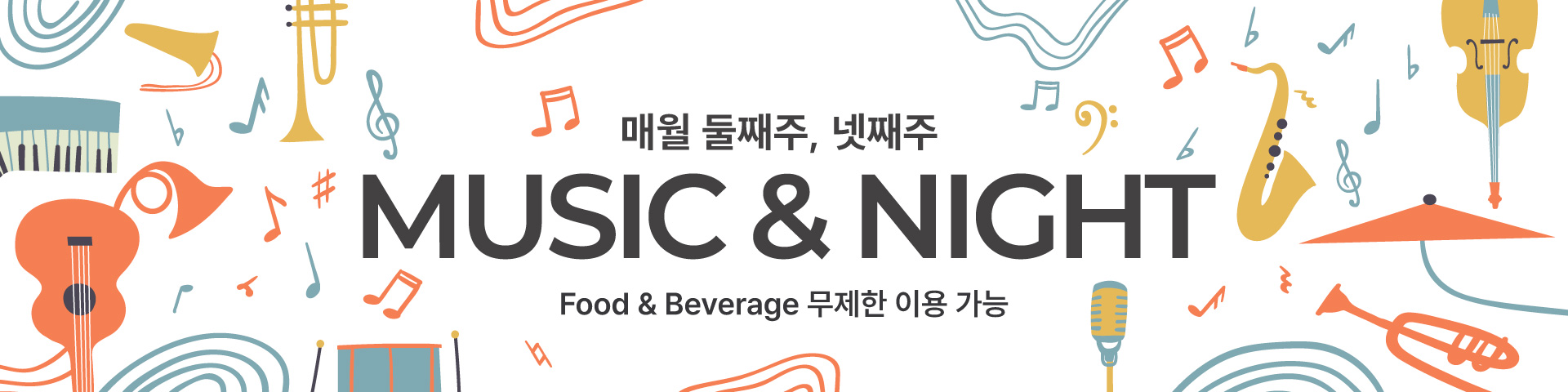 매월 둘째 주, 넷째 주 금요일 무제한 해피아워와 함께 여유로운 밤을 즐겨보세요.