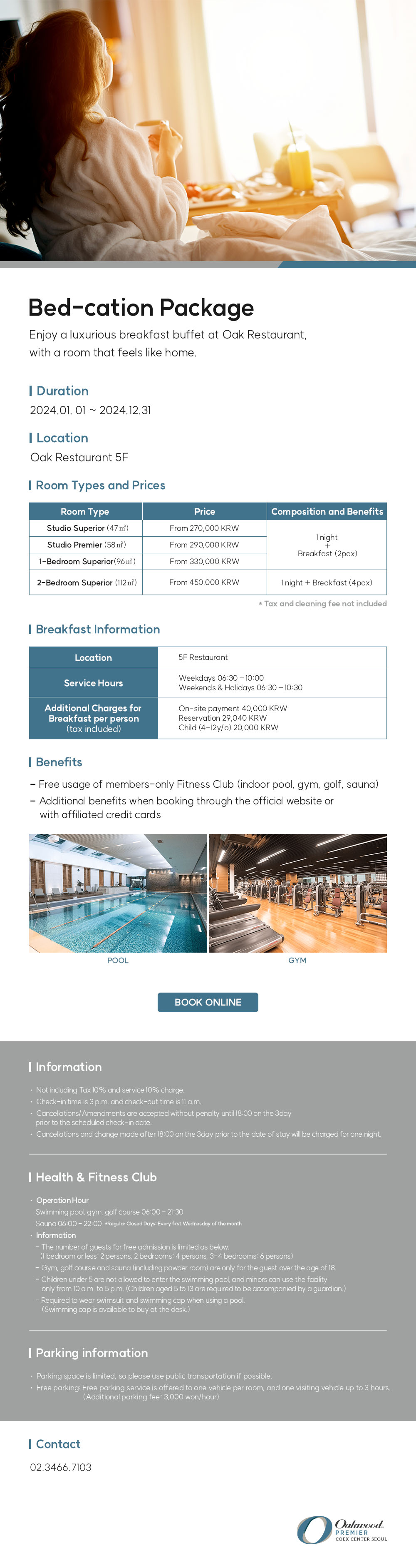 Enjoy a luxurious breakfast buffet at Oak Restaurant, with a room that feels like home.