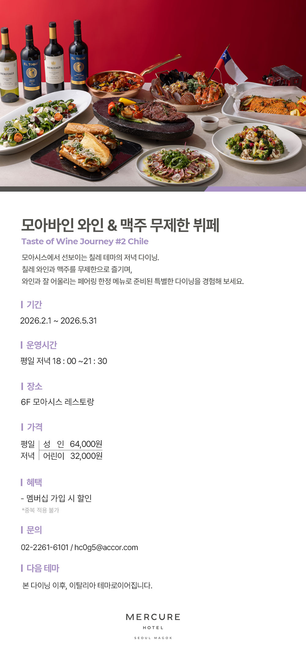 칠레 테마의 와인과 페어링 한정 메뉴로 구성된 저녁 다이닝