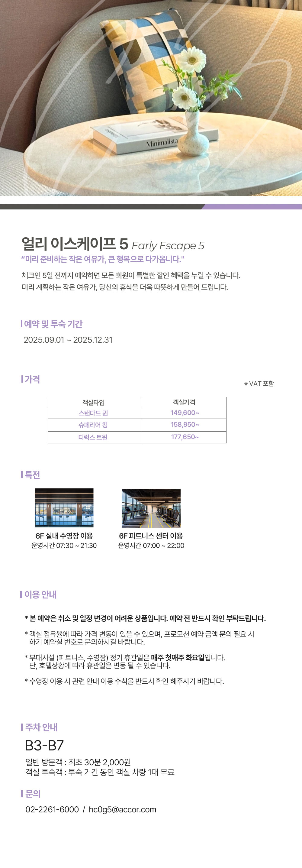 체크인 5일 전까지 예약하시면 특별 할인 혜택을 드립니다. 합리적인 가격으로 여유로운 휴식을 미리 계획해보세요.