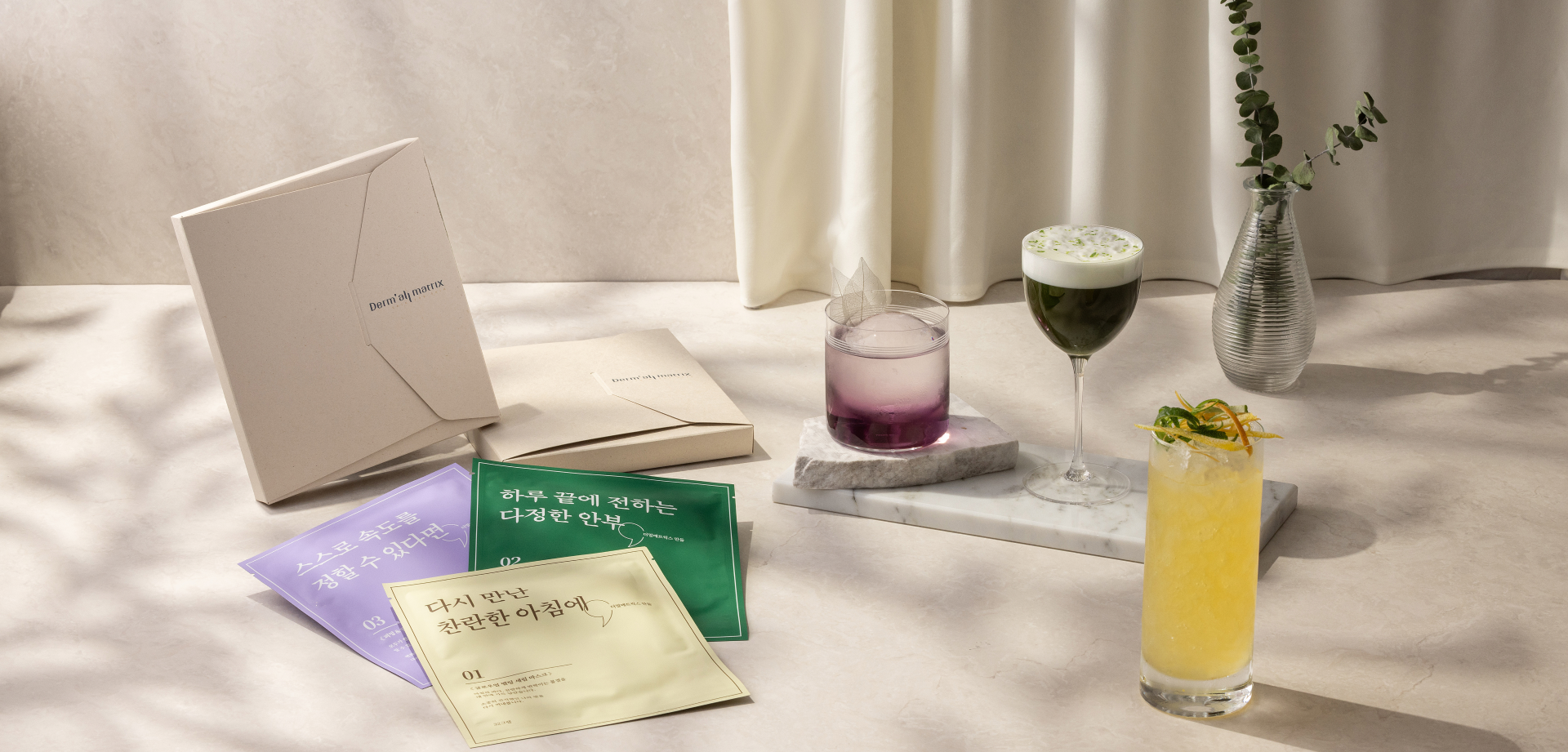 하루의 시작과 끝, 그리고 그 사이의 감정을 담은 세 잔의 칵테일. ‘읽는 에세이 팩’처럼, 하루의 이야기를 한 잔에 기록해보세요.
