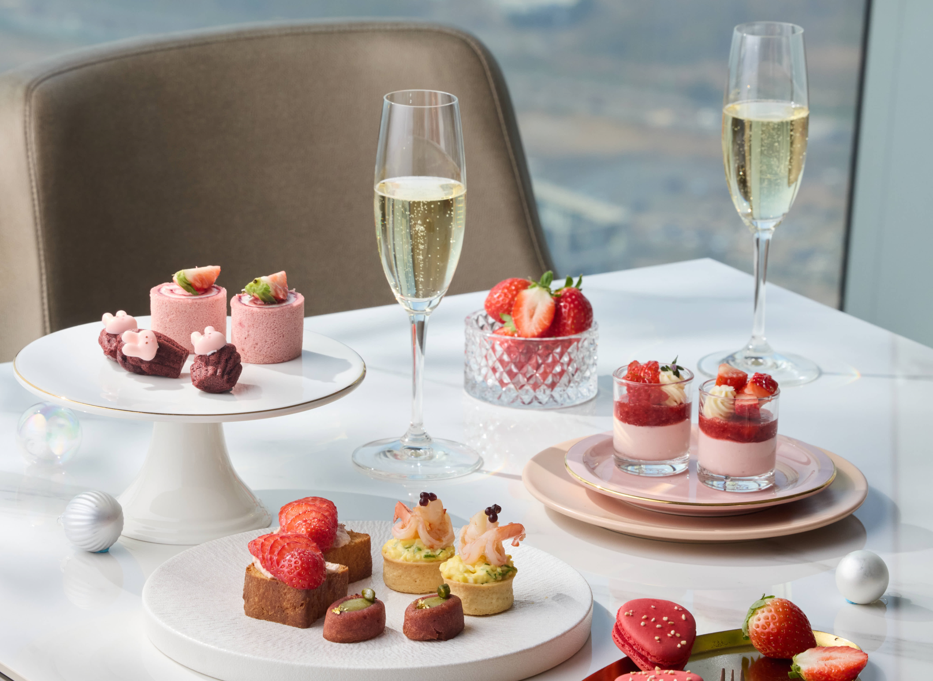 달콤한 디저트와 제철 딸기가 전하는 핑크빛 무드. 따뜻한 차 한 잔과 함께 겨울의 달콤함을 즐겨보세요.