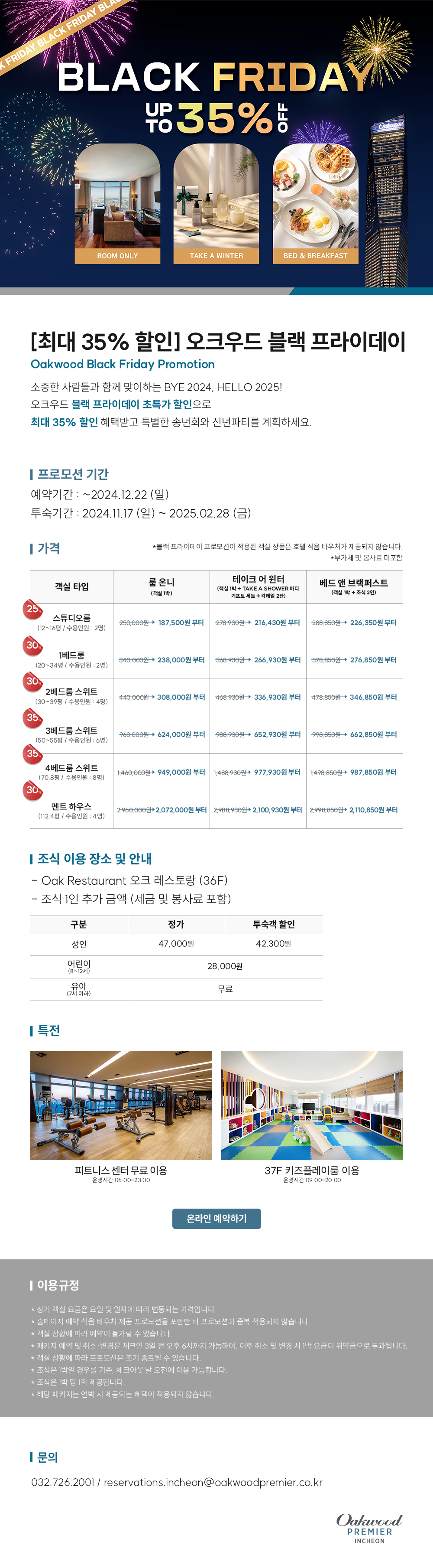 최대 35% 블랙 프라이데이 초특가 할인 혜택받고 특별한 송년회와 신년파티를 계획하세요.