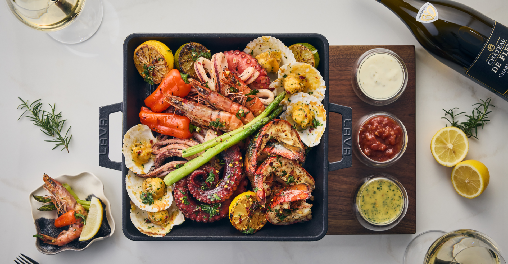 | 씨푸드 플래터. 대하와 문어다리, 랍스터 테일까지. 신선한 바다의 풍미를 한 플래터로 즐겨보세요. |