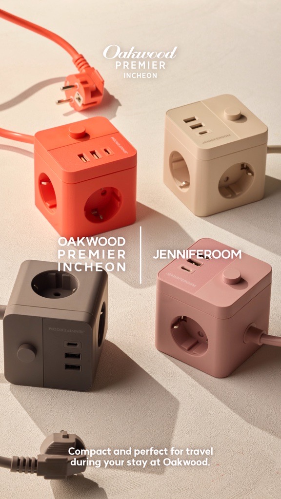1. 컴팩트한 여행 필수품 제니퍼룸 큐브멀티탭을 더스위트 프로모션 예약 및 체크인 시 제공 해 드립니다.
